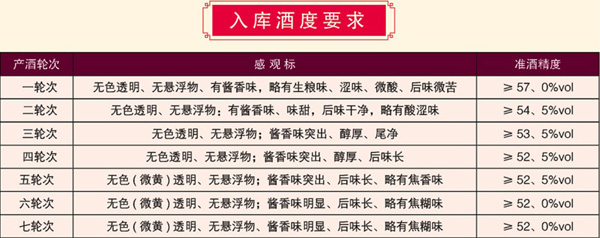 基酒品勾:入库四年对经常调勾后的基酒进行成品酒的勾兑,将不同年份、不同轮次、不同特点的多种基酒,按照科学比例精心勾调成质量稳定的优美酱香酒,勾调好的酒仍需继续储存。